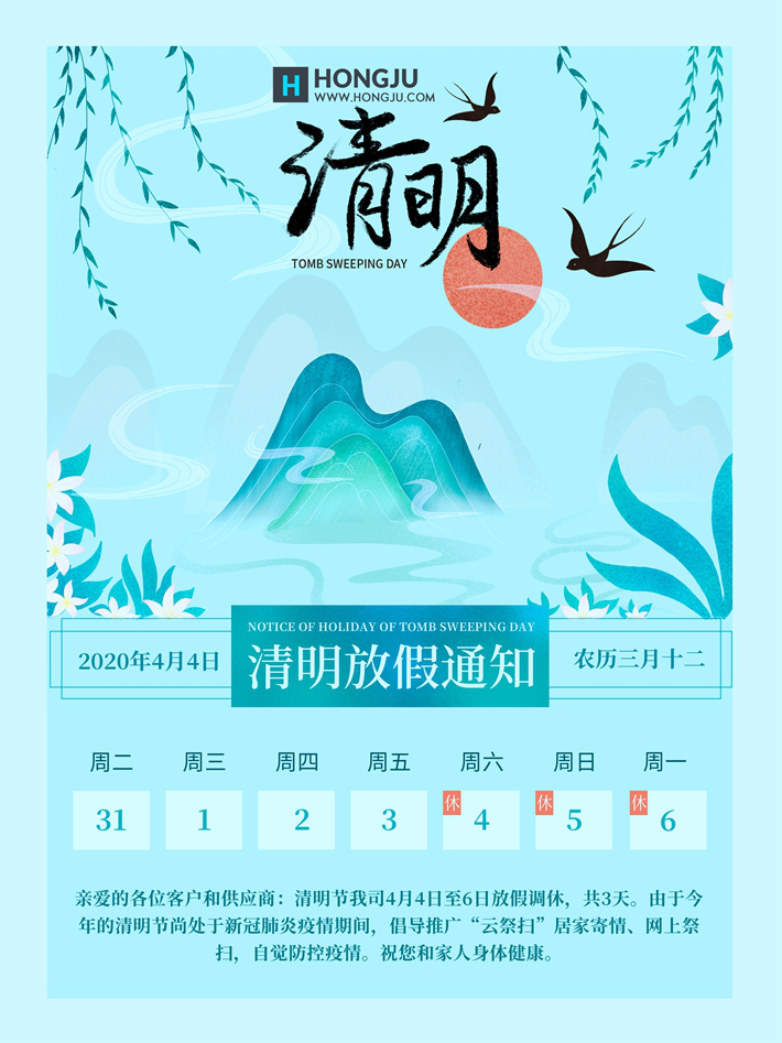 HONGJU宏聚開關(guān)2020年清明節(jié)放假安排