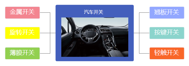 汽車的電子系統部分,它的許多功能部件,如方向盤、內置顯示屏、控制按鈕等。在汽車的中控部分有大量的開關。主要有翹板船型開關,按鍵開關,輕觸開關等,這些開關在汽車工作中起著決定性的作用。