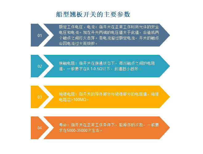 選擇船型翹板開關(guān)時,要根據(jù)電源電壓和開關(guān)控制的電器的最大功率選擇適當(dāng)額定電壓和額定電流參數(shù),通常電器的電壓要在船型翹板開關(guān)的額定電壓范圍,電流要小于船型翹板開關(guān)額定工作電流的80%為宜。