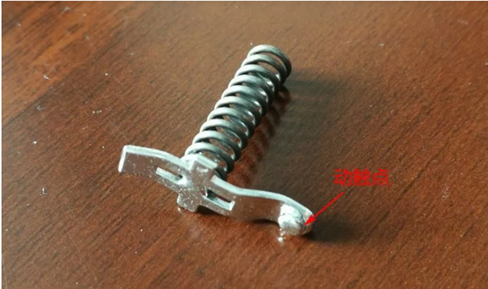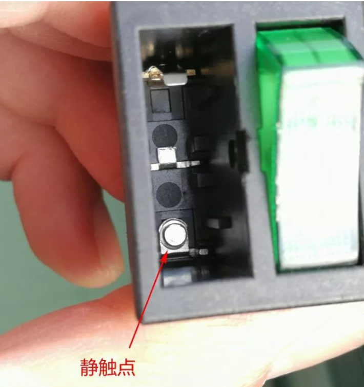 固定在開關(guān)內(nèi)底部與管腳相連的是靜觸點。