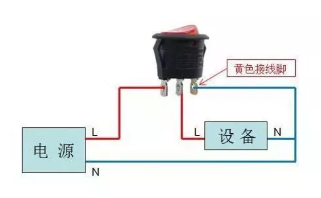 正確的接法是,電源的正極進(jìn)入船型翹板開關(guān)的任意一接線柱都可以,然后從它的另一接線柱引出接入負(fù)載后再回到電源負(fù)極。
