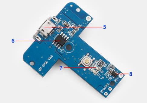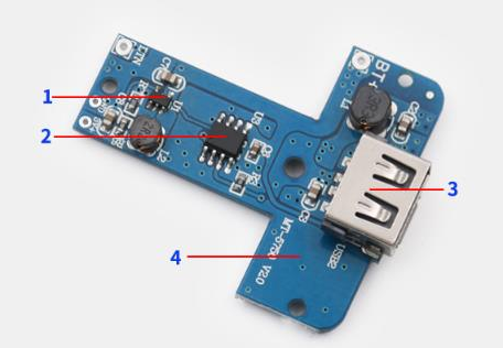 下面我們看些這個上面主要有什么重要的電子元器件:1、升壓芯片;2、單片機;3、USB母座;4、雙面無鉛噴錫板;5、type-c;6、充電芯片;7、充電指示燈和輕觸開關;8、沖放電保護電路;