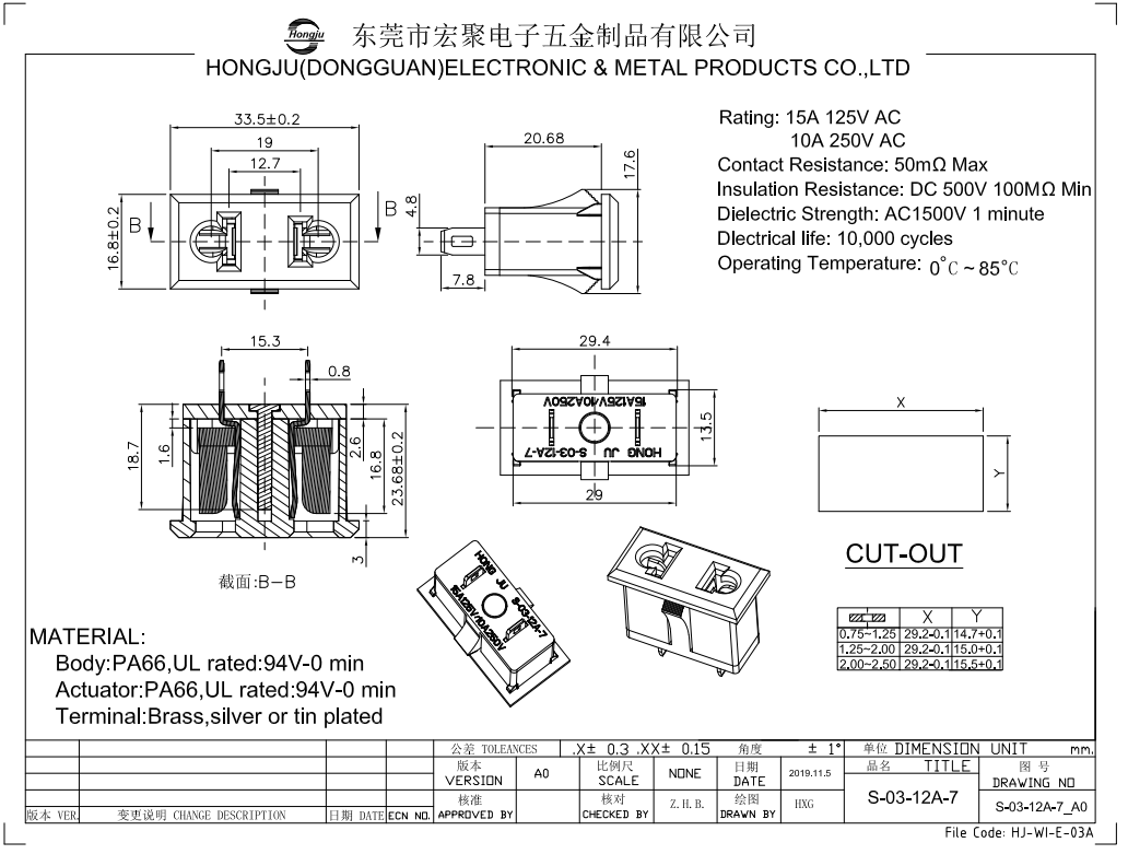 東莞市宏聚電子五金制品有限公司成立于2005年,公司主要生產和研發船型開關帶燈輕觸開關按鍵開關保險絲管座電源插座等電子開關類產品。公司所有出口開關產品均通過 UL、CE、CQC、CCC 等多國安規認證。我公司己實施 ISO9001:2008管理模式并且取得相關證書,所有產品均有作過SGS環保檢測。